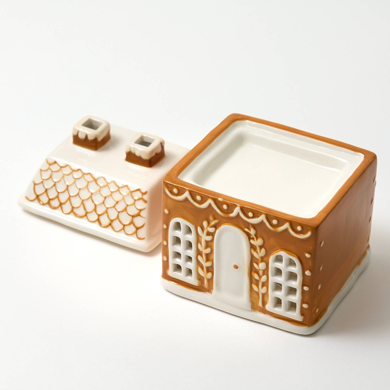 Handcrafted and hand-painted, this festive gingerbread house burner fills any space with seasonal fragrance while serving as a charming decorative centrepiece.