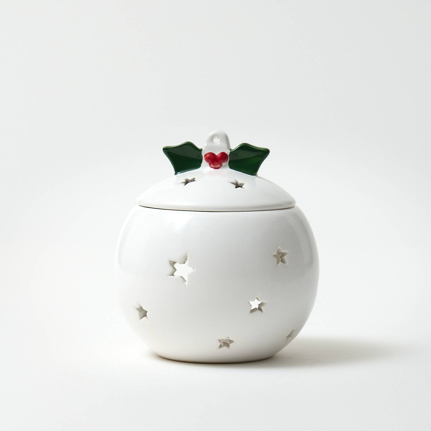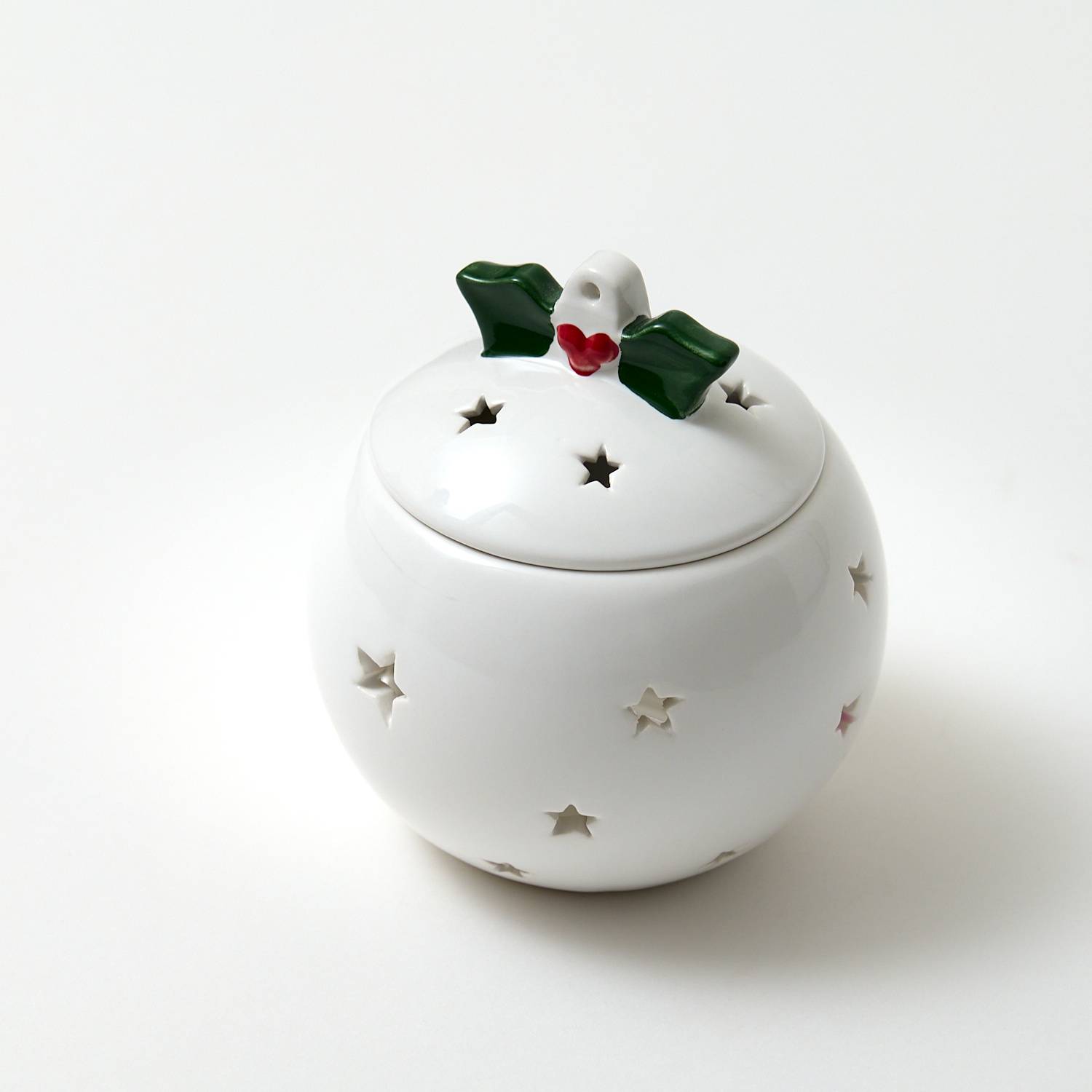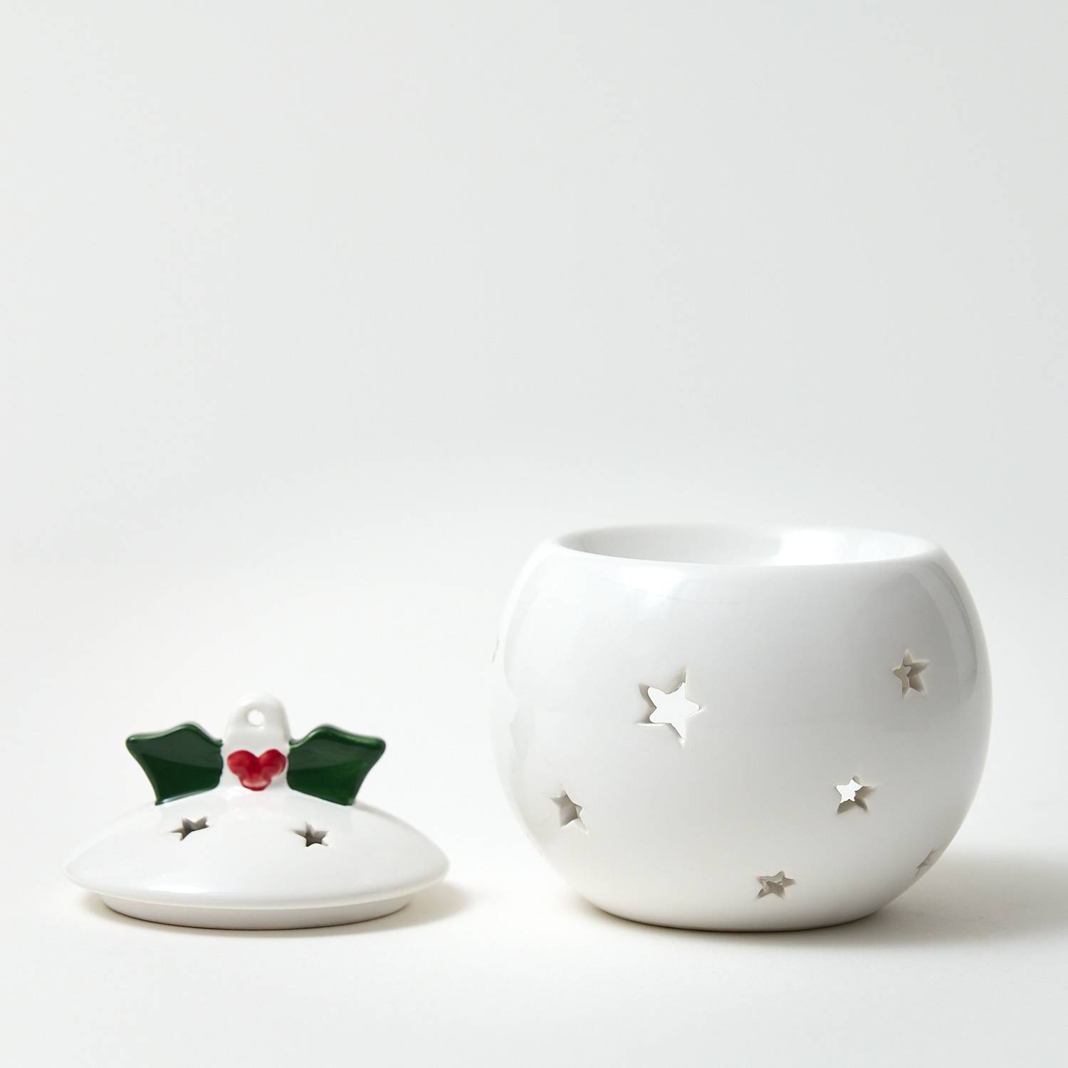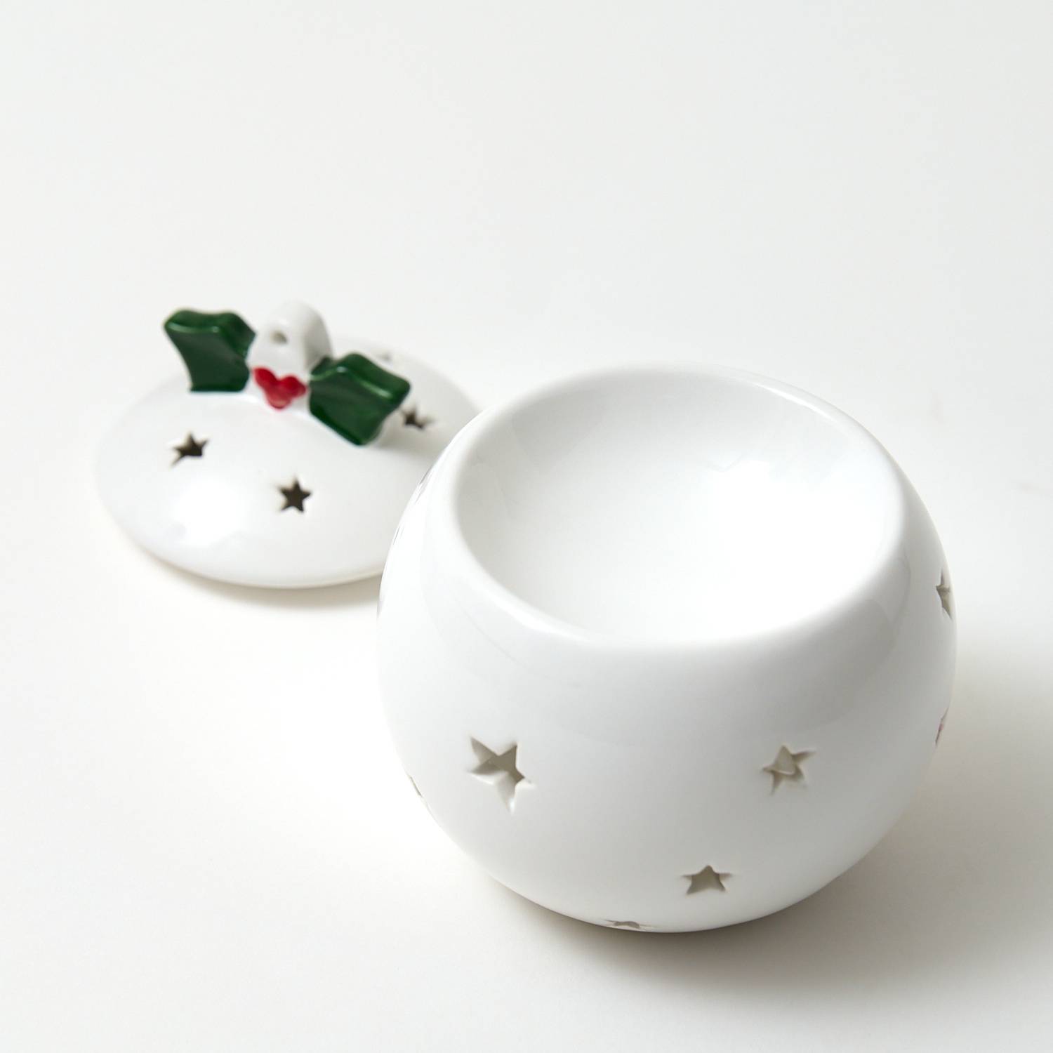 Featuring intricate details, such as a glossy finish and a holly-leaf topper, this burner is ideal for diffusing festive scents like cinnamon, vanilla, or mulled wine.