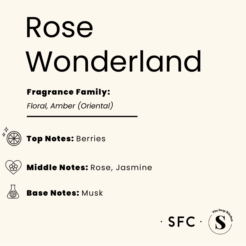 Rose Wonderland Fragrance Oil is similar to the popular fabric conditioner. This fragrance is an uplifting scent with berries, fresh rose, and musk.