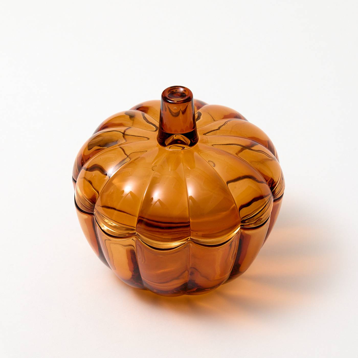Introducing our Small Pumpkin Glass in Amber, the perfect candle vessel to create an inviting warmth this Autumn. Featuring a detailed, pumpkin-shaped design and rich, painted amber colour, these contemporary jars are perfect for Autumn collections and Halloween candles that will complement any decor style.