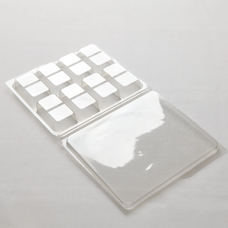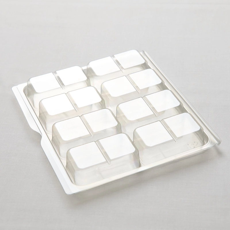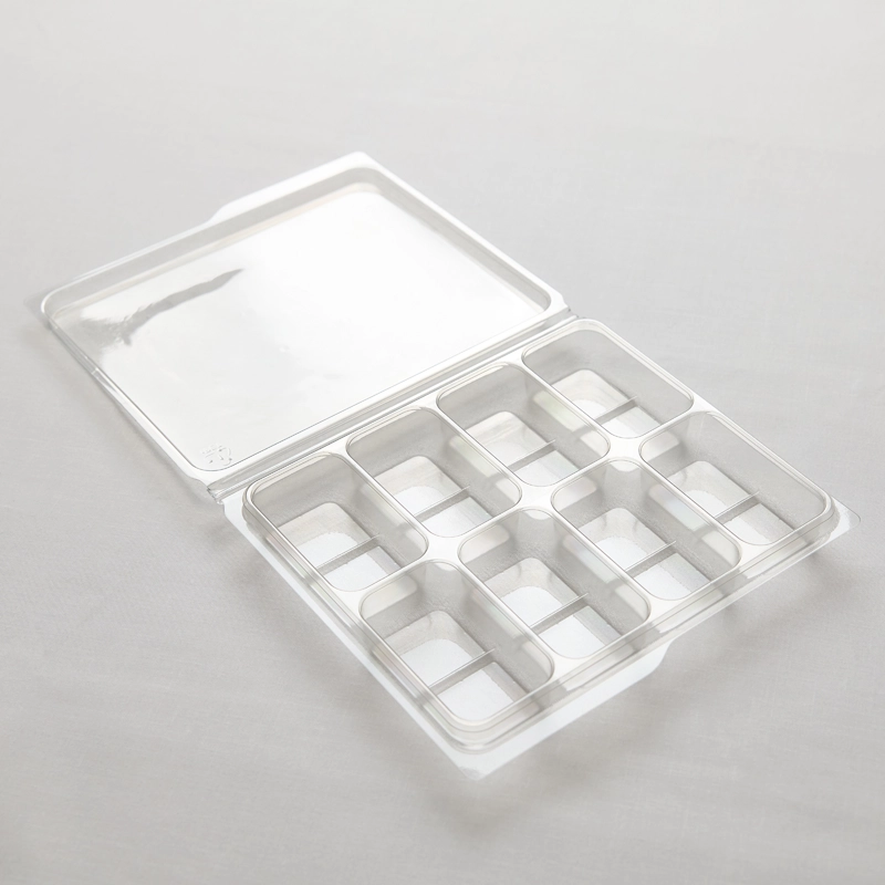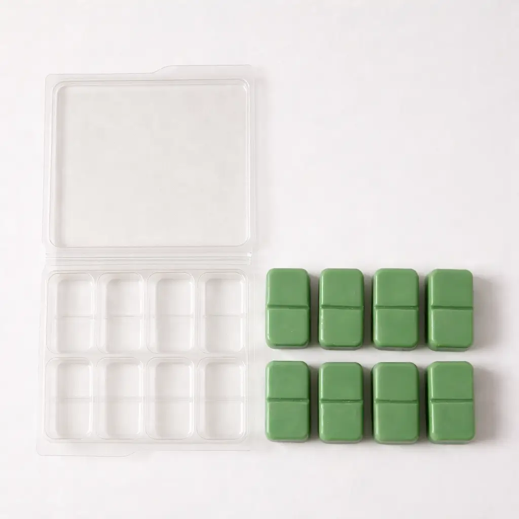 Our Split 8 Cavity Wax Melt Clamshell is manufactured using durable 700-micron plastic. They are fully recyclable and produced with 88% recycled PET, making them a more sustainable choice.