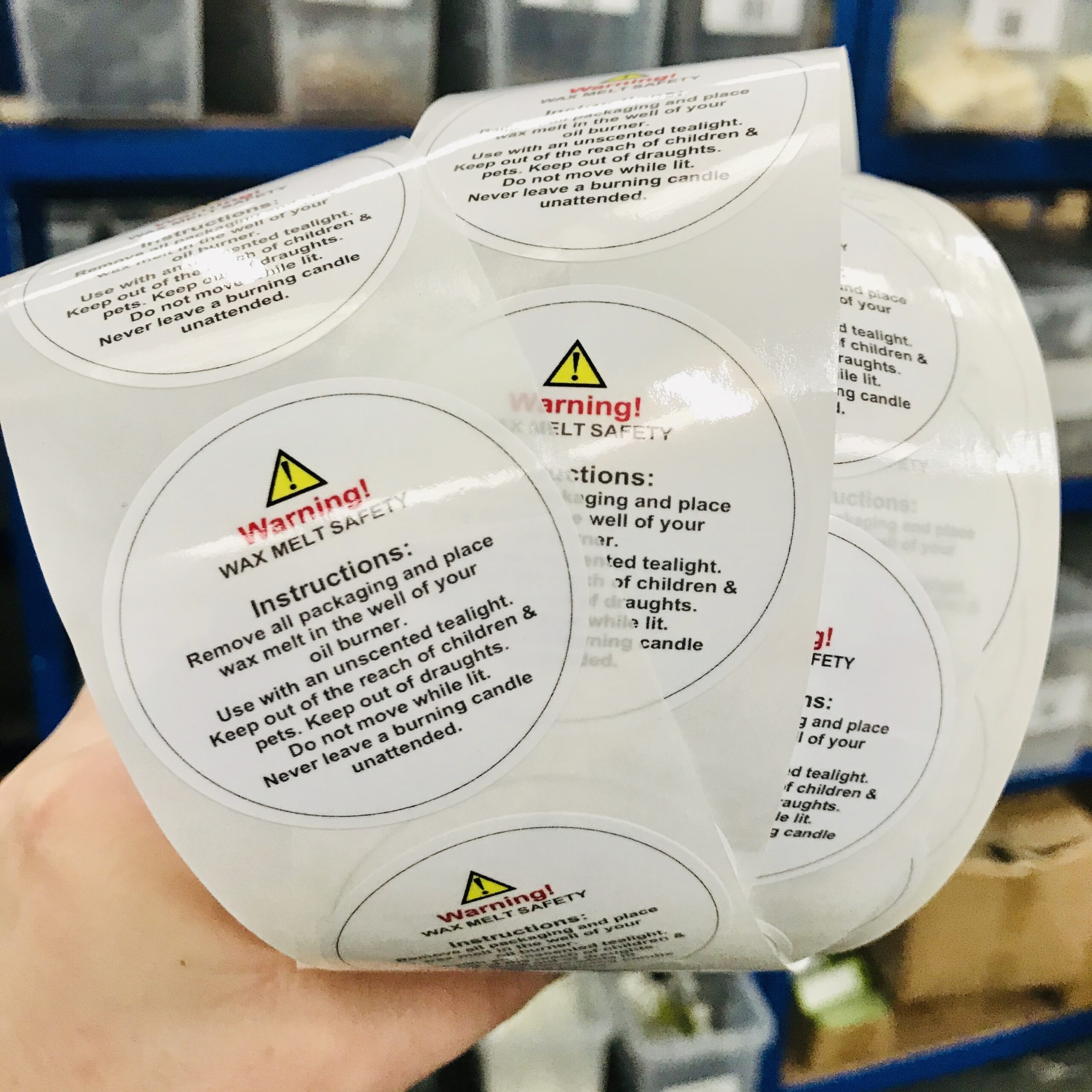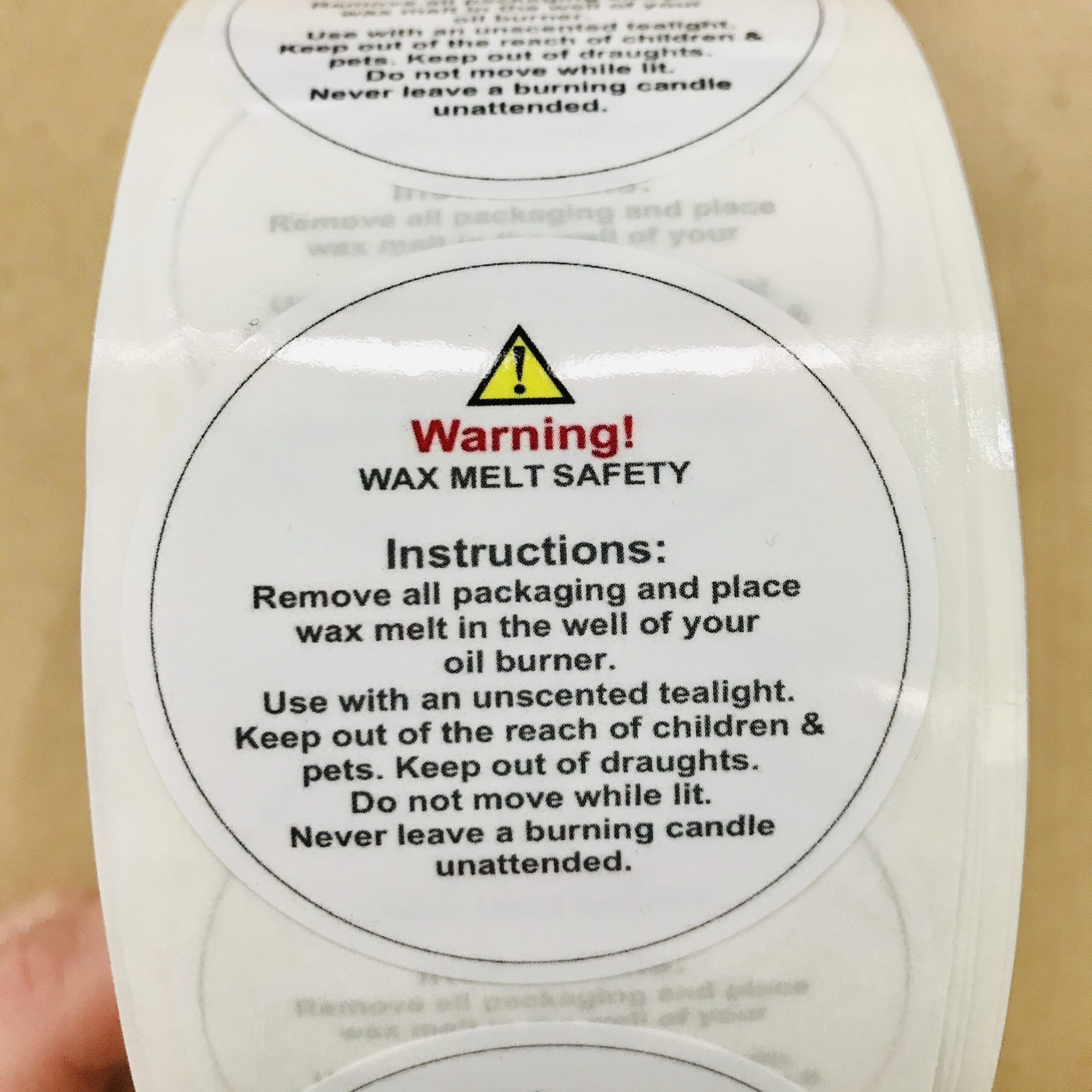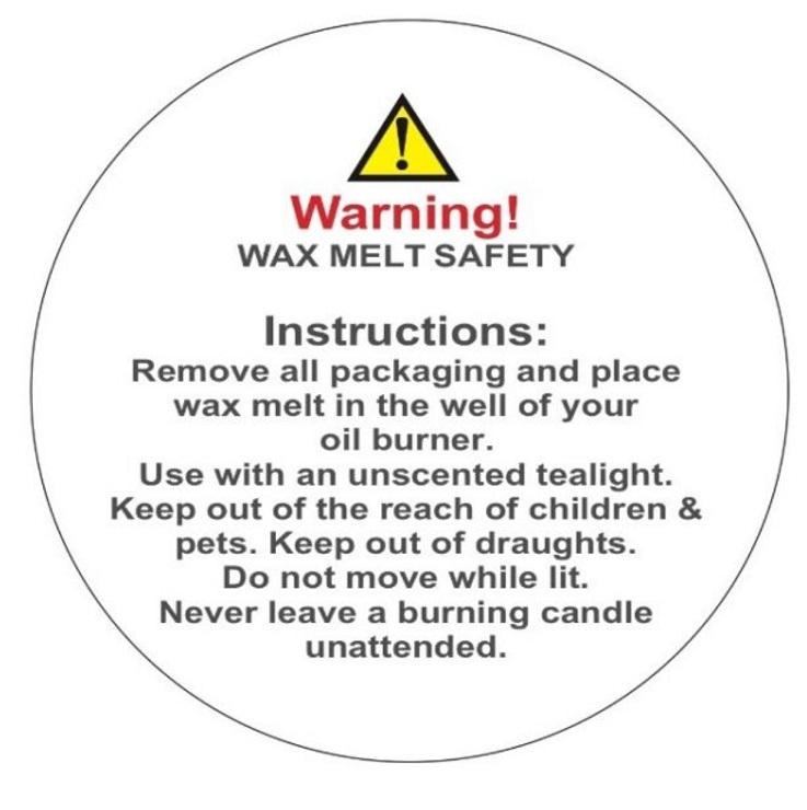 Labelling your wax melts is a must, even more so if you are selling your wax melts. Under the General Product Safety Regulations 2005, it is required that all producers and distributors of any potentially dangerous product must be fully labelled with information and warnings relating to that product. Our wax melt safety label contains all the relevant information and warnings your customers need to know about safely using your wax melts; just add your CLP label and you are ready to sell! A plain white safety label in packs of 10, 100 & rolls of 1000. Label size: 50 mm x 50 mm